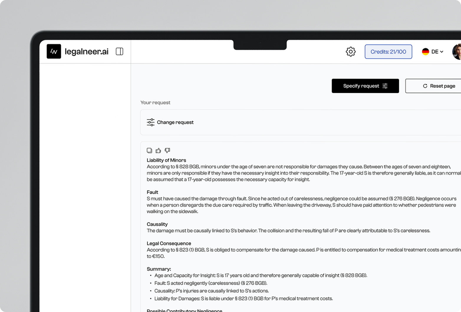 Answer technical questions quickly, accurately and transparently – directly from your own database. Summarise legal texts and create drafts of legal opinions. Manage your technical data efficiently and always have an overview. Optimise your workflow and save valuable time with our innovative solution.